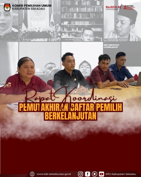 Komisi Pemilihan Umum (KPU) Kabupaten Sekadau mengikuti Rapat Koordinasi Pemutakhiran Daftar Pemilih Berkelanjutan (PDPB) yang digelar oleh KPU Republik Indonesia secara daring melalui aplikasi Zoom Meeting, pada Selasa (9/9/2025).