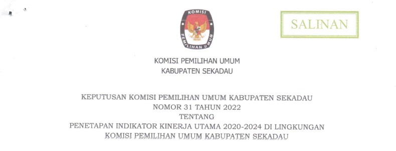 KEPUTUSAN KOMISI PEMILIHAN UMUM KABUPATEN SEKADAU NOMOR 31 TAHUN 2022