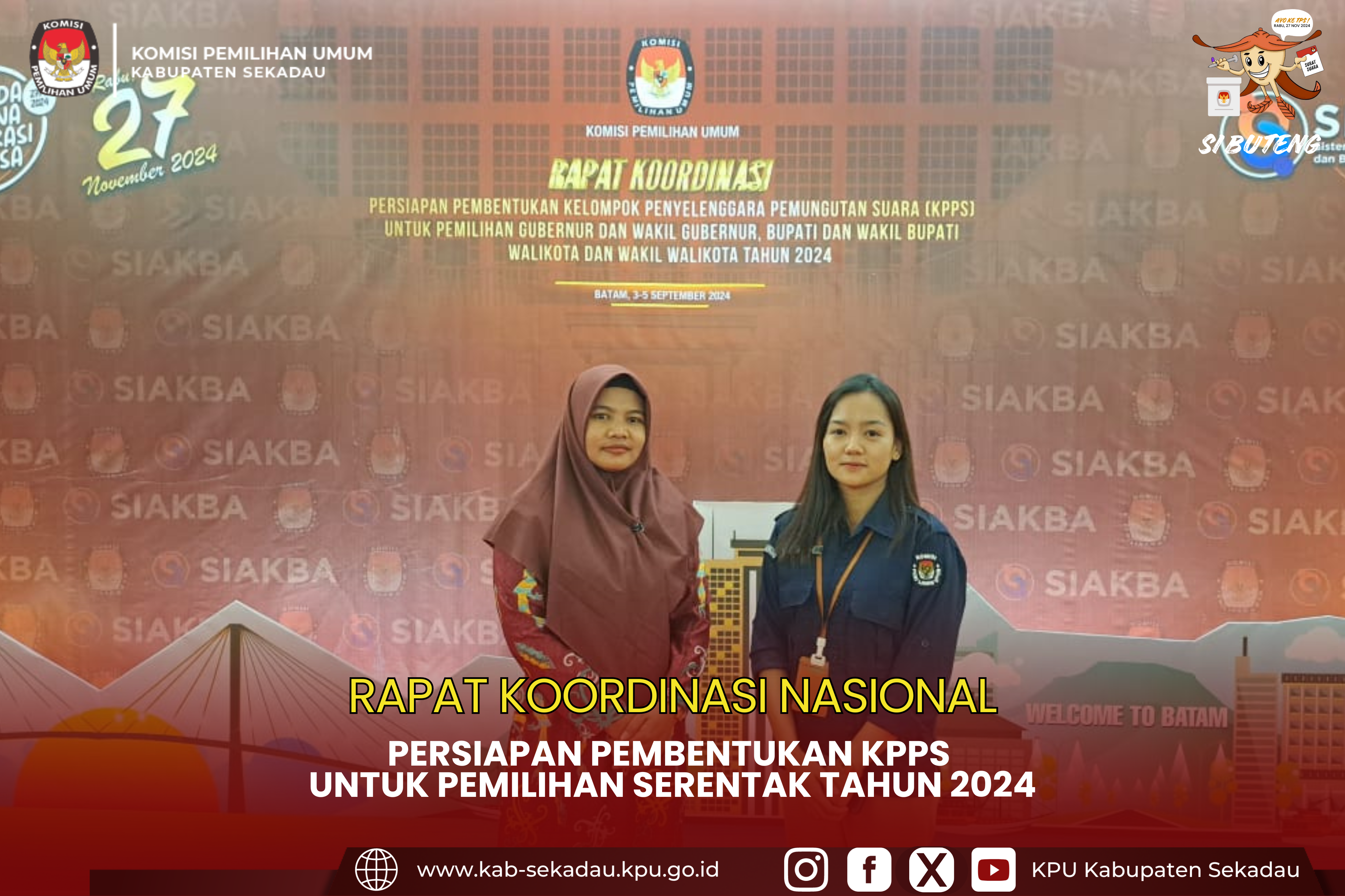 Komisi Pemilihan Umum (KPU) Kabupaten Sekadau turut serta dalam Rapat Koordinasi Persiapan Pembentukan Kelompok Penyelenggara Pemungutan Suara (KPPS) untuk Pemilihan Gubernur dan Wakil Gubernur, Bupati dan Wakil Bupati serta Walikota dan Wakil Walikota dalam Pemilihan Serentak Tahun 2024. Acara ini berlangsung di Swiss-Belhotel Harbour Bay Kota Batam kepulaun Riau yang berlangsung pada Tanggal 3 s.d 5 Septerber 2024.