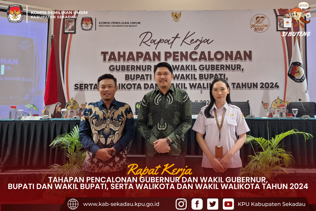 #TemanPemilih, KPU Sekadau Mengikuti Rapat Kerja Tahapan Pencalonan Gubernur dan Wakil Gubernur, Bupati dan Wakil Bupati, serta Walikota dan Wakil Walikota Tahun 2024, bertempat di Hotel Mercure Pontianak, Kamis-Sabtu (25-27/7).