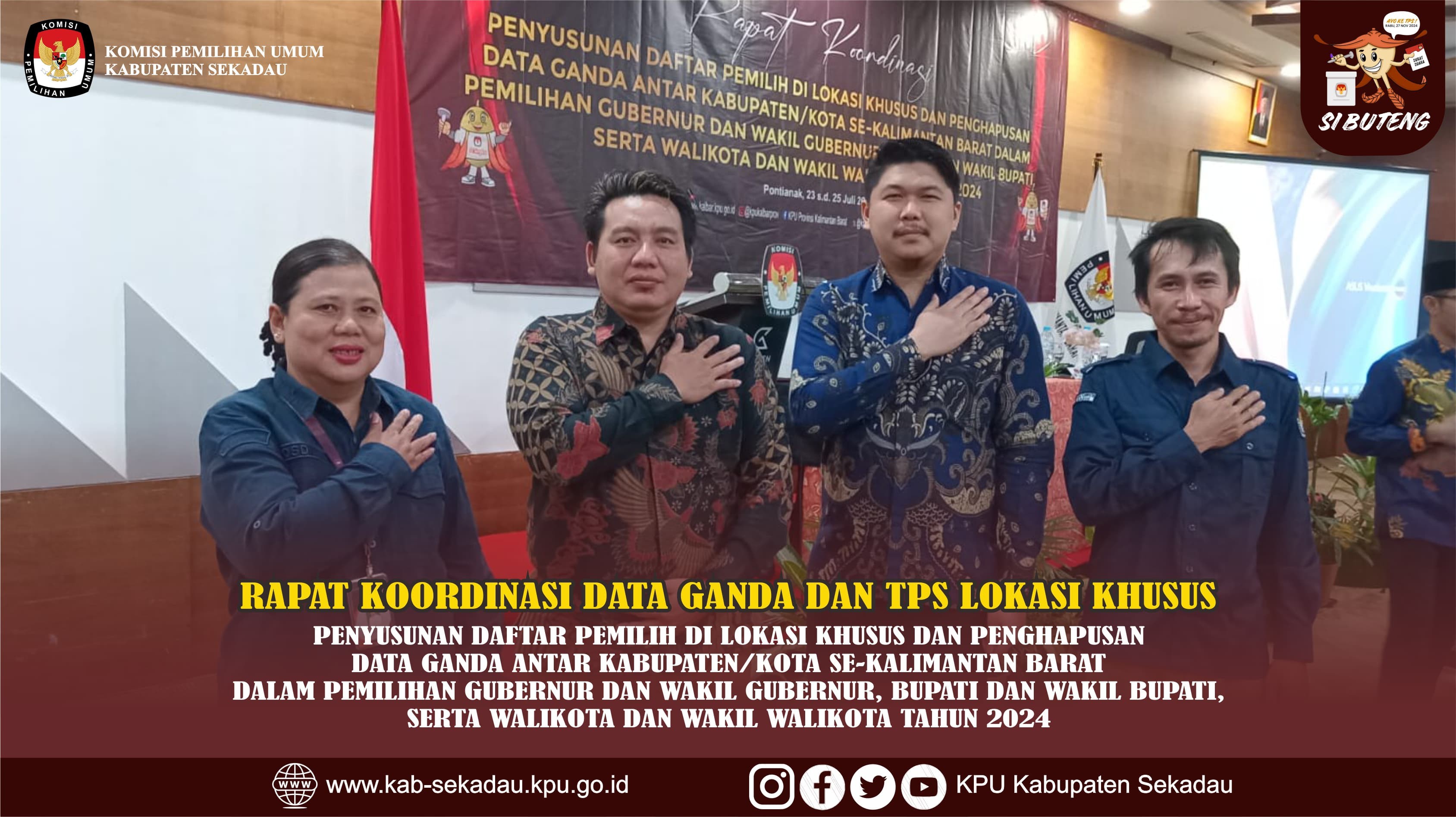 #TemanPemilih, KPU Sekadau mengikuti Rapat Koordinasi Penyusunan Daftar Pemilih di Lokasi Khusus dan Penghapusan Data Ganda Antarkabupaten/kota se-Kalimantan Barat dalam Pemilihan Gubernur dan Wakil Gubernur, Bupati dan Wakil Bupati, Serta Walikota dan Wakil Walikota Tahun 2024, di Hotel Golden Tulip Pontianak, Selasa-Kamis (23-25/7).