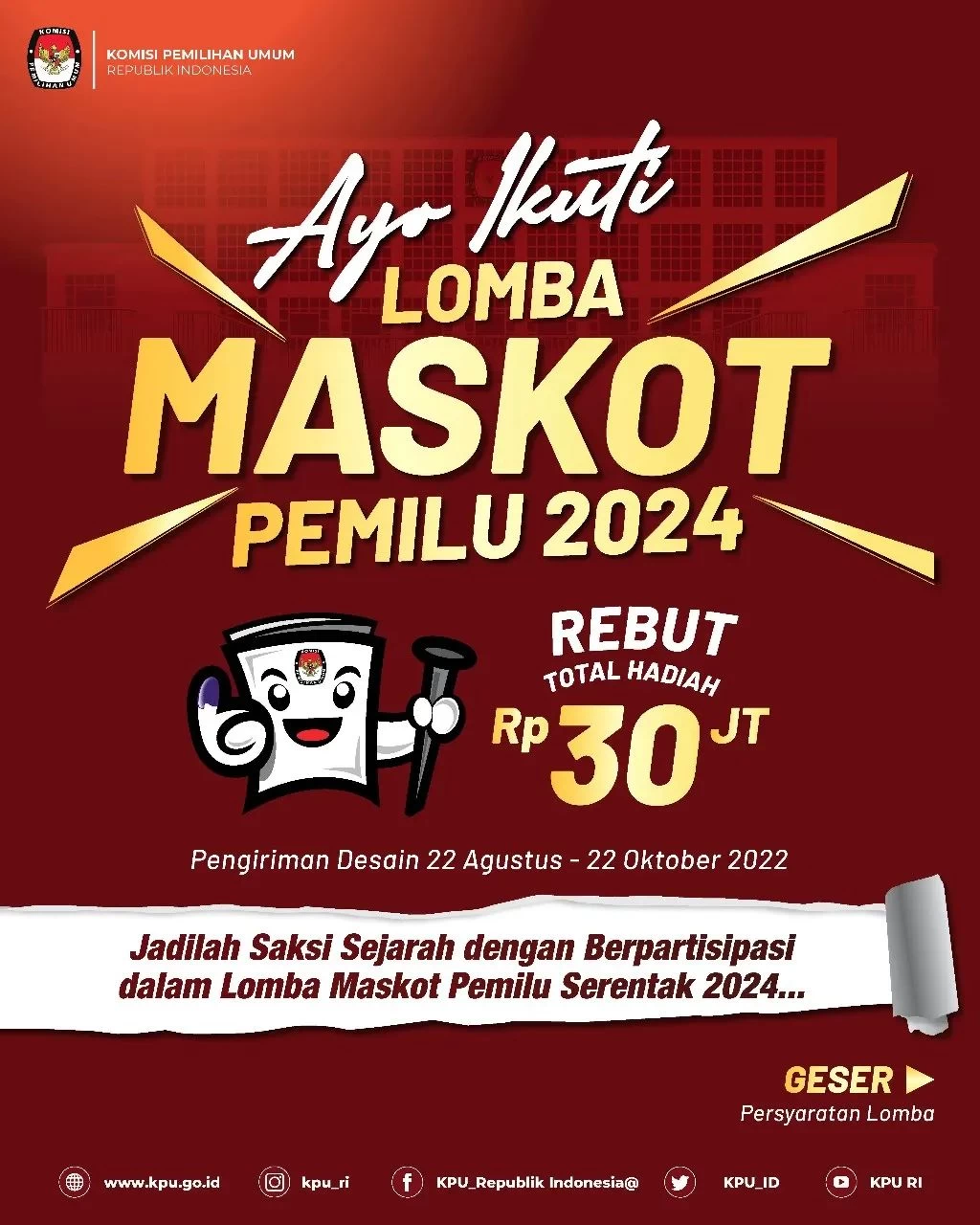 Jadilah saksi sejarah dengan berpartisipasi dalam Lomba Maskot Pemilu Serentak 2024.