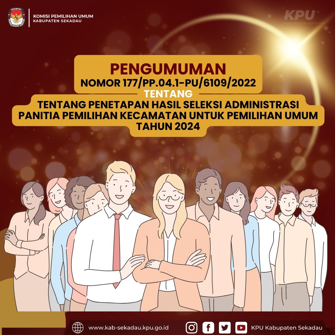 Pengumuman Nomor 177/PP.04.1-Pu/6109/2022 Tentang Penetapan Hasil Seleksi Administrasi Panitia Pemilihan Kecamatan untuk Pemilihan Umum Tahun 2024
