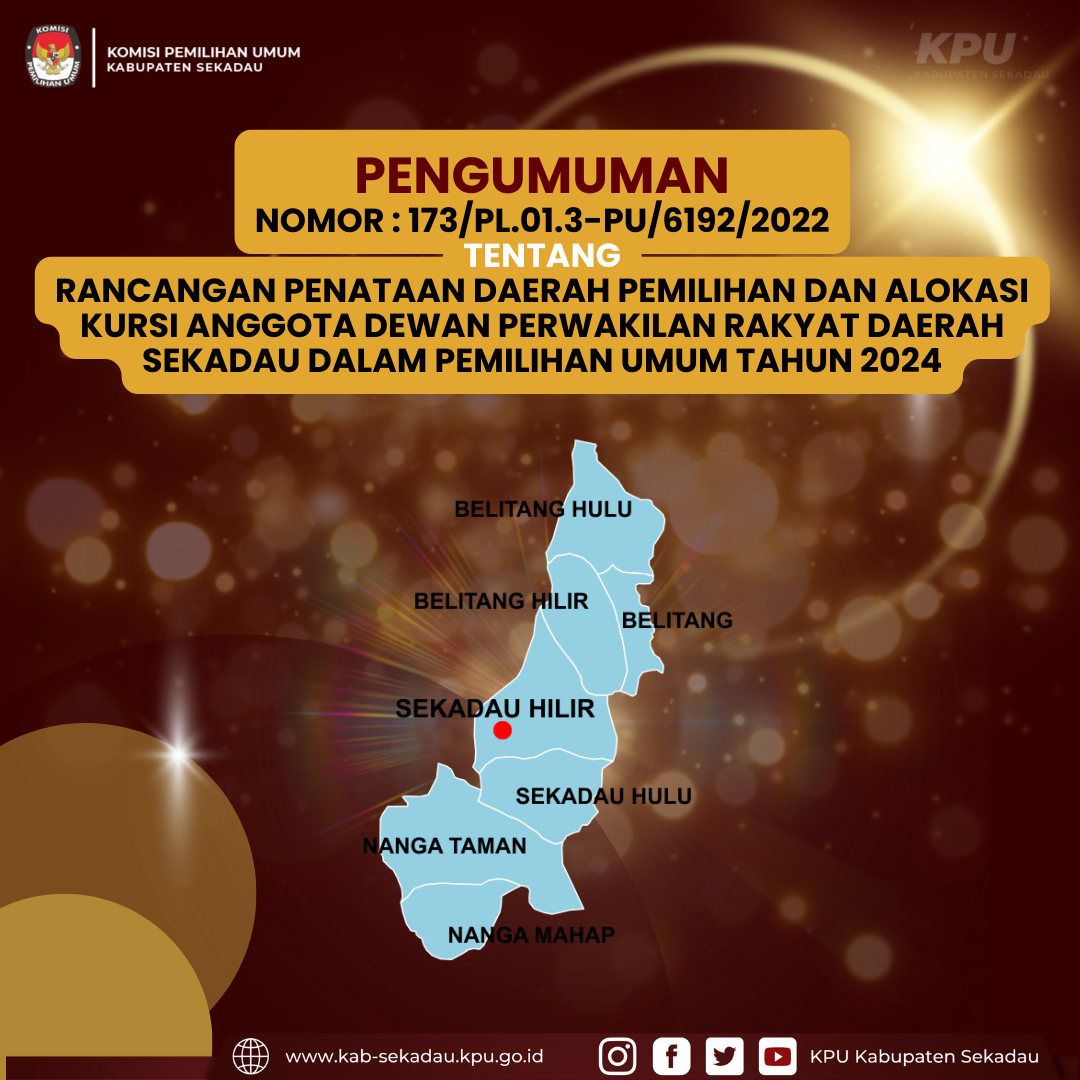 PENGUMUMAN RANCANGAN PENATAAN DAERAH PEMILIHAN DAN ALOKASI KURSI ANGGOTA DEWAN PERWAKILAN RAKYAT DAERAH SEKADAU DALAM PEMILIHAN UMUM TAHUN 2024