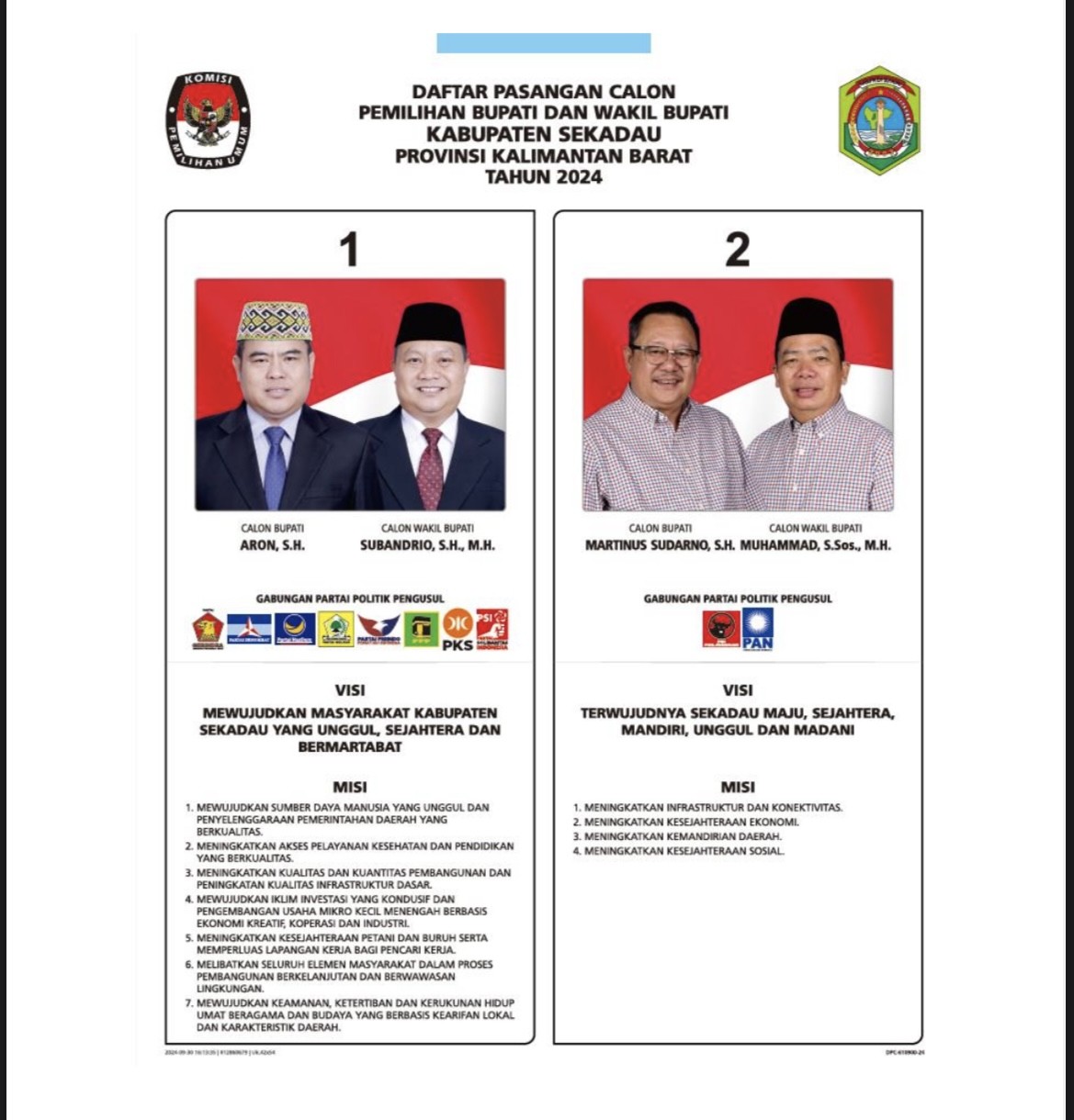PENGUMUMAN TENTANG DAFTAR PASANGAN CALON PESERTA PEMILIHAN BUPATI DAN WAKIL BUPATI SEKADAU TAHUN 2024