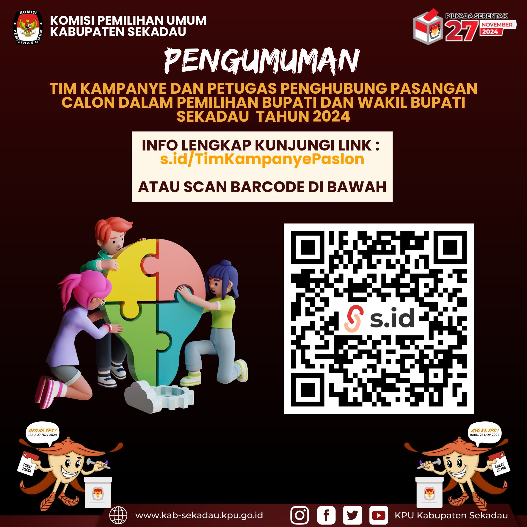 #TemanPemilih, Berikut pengumuman Tim Kampanye dan Petugas Penghubung Pasangan Calon Dalam Pemilihan Bupati dan Wakil Bupati Sekadau Tahun 2024.