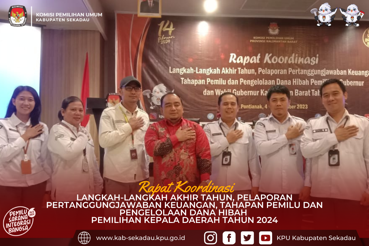 #TemanPemilih, Komisi Pemilihan Umum (KPU) Kabupaten Sekadau turut serta dalam kegiatan Rapat Koordinasi Langkah-Langkah Akhir Tahun, Pelaporan Pertanggungjawaban Keuangan, Tahapan Pemilu, dan Pengelolaan Dana Hibah Pemilihan Kepala Daerah (Pilkada) tahun 2024. Rapat tersebut diselenggarakan oleh KPU Provinsi Kalimantan Barat sebagai bagian dari persiapan menyelenggarakan Pilkada di tingkat daerah.