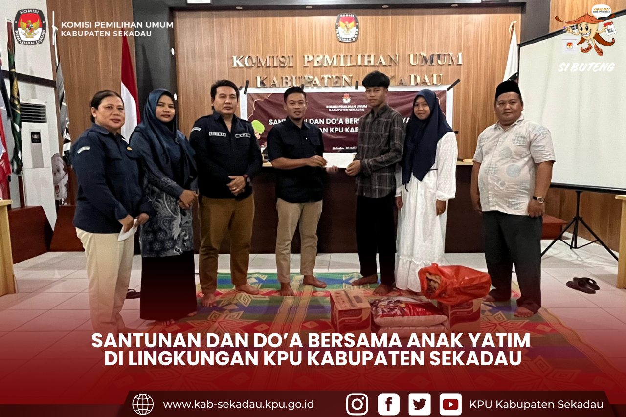 Komisi Pemilihan Umum (KPU) Kabupaten Sekadau mengadakan acara santunan dan doa bersama anak yatim yang bertempat di lingkungan KPU Kabupaten Sekadau. Kegiatan yang berlangsung pada Selasa (16/7) dipimpin langsung oleh Plh. Ketua KPU Sekadau, Gita Rantau. Acara ini diadakan dengan tujuan untuk memohon kelancaran pelaksanaan Pemilihan Kepala Daerah yang akan dilaksanakan pada 27 November 2024 mendatang.