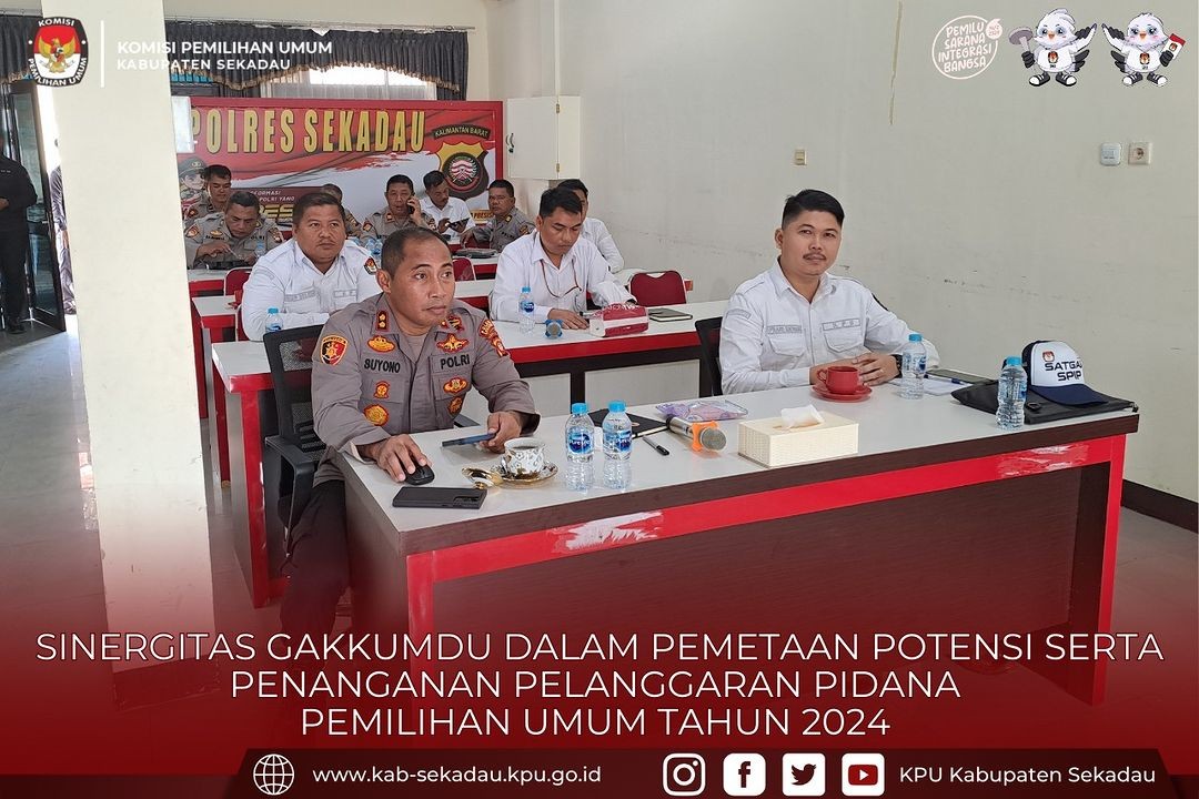 #TemanPemilih, KPU Kabupaten Sekadau menghadiri Sinergitas Gakkumdu Dalam Pemetaan Potensi Serta Penanganan Pelanggaran Pidana Pemilihan Umum Tahun 2024, di ruang rapat Polres sekadau.