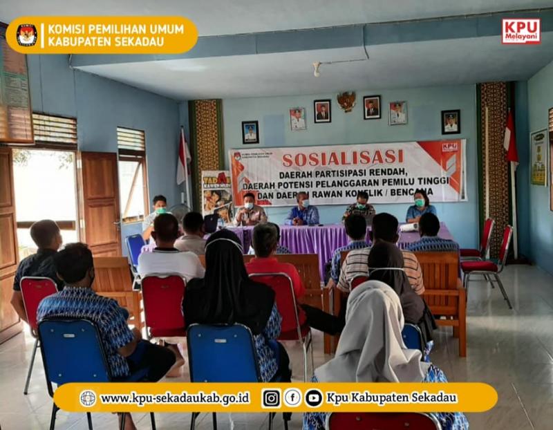 KPU Kabupaten Sekadau melaksanakan Sosialisasi Pendidikan Pemilih Dalam rangka pelaksanaan Program Pendidikan Pemilih pada Daerah Partisipasi Rendah, Daerah Potensi Pelanggaran Pemilu Tinggi, dan Daerah Rawan Konflik/Bencana.